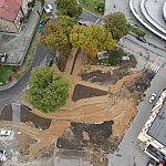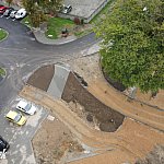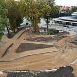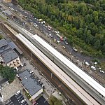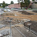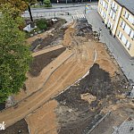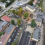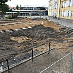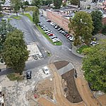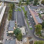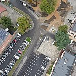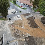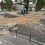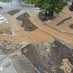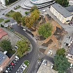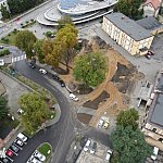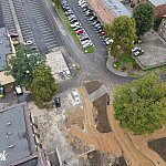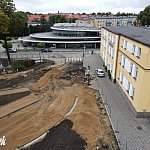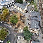 Trwa budowa centrum przesiadkowego w Tarnowskich Górach. Parking jest gotowy, powstają drogi przed dworcem kolejowym.