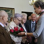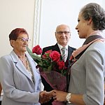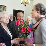 Gratulacje jubilatom składały Sława Umińska-Duraj – prezydent Piekar Śląskich i Anita Rabsztyn – kierownik USC.