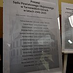 W sali konferencyjnej przygotowano bardzo ciekawą wystawę poświęconą historii sądownictwa. Wystawiono archiwalne księgi wieczyste, urządzenia biurowe z ostatnich stu lat, stare mapy. W jednej z sal rozpraw były z kolei stare zdjęcia czy spis sędziów i prezesów tarnogórskiego sądu. Przygotowano również symulację rozprawy karnej, w której można było wziąć udział także on-line.