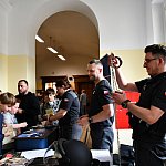 Policjanci prezentowali sprzęt stosowany m.in. podczas zabezpieczania imprez masowych, funkcjonariusze służby więziennej zakuwali chętnych w kajdanki na ręce i nogi.