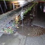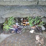 "Pora deszczowa na ul. Częstochowskiej rozpoczęta. Jak widać infrastruktura jest w coraz gorszym stanie. Aleja zapomnienia odcięta od ruchu pieszego zaczyna wyglądać jak sceneria z Parku Jurajskiego. Nagromadzone odpady spływające z górnej części miasta pod wiadukt z pewnością pochodzą tylko i wyłącznie z kanalizacji deszczowej. Rury odprowadzające wodę są tak pozapychane piaskiem, ziemią i kamieniami, że widać to wszystko wokół kratek ściekowych w postaci kołnierzy nagromadzonych wokół nich.