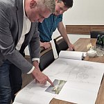 Wójt Świerklańca Grzegorz Zadęcki i jego zastępca Adrian Blondzik przyjrzeli się w piątek projektowi przebudowy zejścia do stawu parkowego, od strony nieistniejącego pałacu Donnersmarcków - Małego Wersalu.