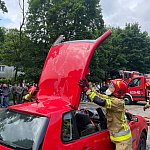 Widowiskowa była część praktyczna. Strażacy zrobili pokaz technicznej akcji ratowniczej – wycinanie poszkodowanego z samochodu. Druhowie z Orzecha przygotowali pokaz psów ratowniczych, HKR - demonstrację RKO i użycia AED, a LOK - pokaz broni i wirtualną strzelnicę.