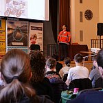 Na początek były prelekcje. Łukasz Pach, dyrektor WPR w Katowicach i Michał Malisz opowiedzieli o realiach pracy ratowników medycznych, Wojciech Krawczyk z WOPR-u przybliżył zasady bezpieczeństwa nad wodą, a Łukasz Jakubowski z tarnogórskiej policji zajął się bezpieczeństwem na drogach.