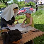 Dużym zainteresowaniem cieszyło się stanowisko garncarskie, można było strzelać z łuku, zobaczyć barwienie przędzy i tkanie na krośnie. Zresztą pokazów dawnych rzemiosł było wiele, a w większości samemu można było spróbować swoich sił w tworzeniu. Wśród rzemieślników był m.in. jeden z najbardziej znanych w Polsce bursztynników.
