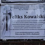 Mszę za zmarłego odprawiono w kościele pw. św. Marcina w Starych Tarnowicach. Na czele konduktu pogrzebowego była Tarnogórska Orkiestra Dęta, potem jechały powozy konne. Nie zabrakło tego, którym zwykle powoził śp. Feliks Kowalski, z pięknymi karymi końmi. Tym razem jednak był pusty. Położono na nim cylinder zmarłego, białą różę, płonęły świece.