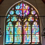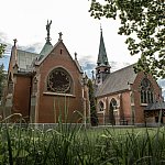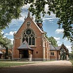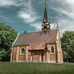 Na zdjęciach widzimy też kościół i mauzoleum Donnersmarcków, które powstały w latach 1895–1897. Zaprojektował je Juliusz Raschdorff, który inspirował się berlińskim kościołem Monbijou.