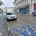 Taki komunikat jest m.in. na ul. Piastowskiej. Tyle że już rano, o godz. 8, miejsca parkingowe zostały wyłączone z użytku, a te samochody, które na nich stały znalazły się za taśmą. Na miejscu była straż miejska.