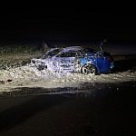 Ford mustang doszczętnie spłonął. Do pożaru doszło w sobotę późnym wieczorem na ul. Wiejskiej w Księżym Lesie, w gminie Zbrosławice.
