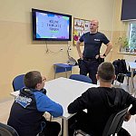 O ochronie prywatności w mediach społecznościowych, dbaniu o wizerunek, reagowaniu na groźby, zgłaszaniu przestępstw, szacunku do drugiego człowieka i innych istotnych dla młodzieży kwestiach z najmłodszymi pacjentami CZP rozmawiał podkomisarz Norbert Ucieklak z Komendy Powiatowej Policji w Tarnowskich Górach.