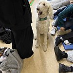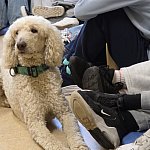 Zajęcia z pudlem królewskim Lilo i dogoterapeutką Anną Mikołajczyk z uwagi na zainteresowanie zorganizować trzeba było podwójnie. Wzięli w nich udział pacjenci CZP,  ale także uczniowie Zespołu Szkół-Chemiczno Medycznych.
