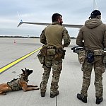 Na lotnisku w Pyrzowicach przeprowadzono ćwiczenia przewodników psów służbowych wyspecjalizowanych w wykrywaniu materiałów wybuchowych i broni.
