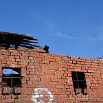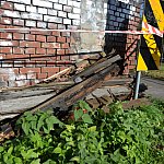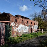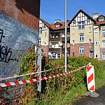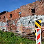 W rejonie skrzyżowania ul. Bytomskiej z Legionów, niedaleko ronda stoi zrujnowany budynek gospodarczy, z zapadniętym dachem.