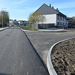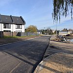 Teraz wykonawca układa warstwę ścieralną nawierzchni jezdni, chodniki i zjazdy oraz prowadzi prace wykończeniowe.