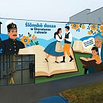 Mural przedstawia śląską kulturę, która żyje w literaturze, tradycjach i języku. Obrazy górnika, tańczącej pary oraz babci z wnukiem ukazują, jak słowo i przekazywanie historii kształtują tożsamość regionu. Hasło „kej sie czyto po naszymu, serce rośnie" podkreśla znaczenie śląskiego języka w budowaniu więzi między pokoleniami. Mural łączy elementy folkloru, przemysłowego dziedzictwa oraz edukacji, tworząc wizualną opowieść o lokalnej tradycji i literaturze.