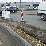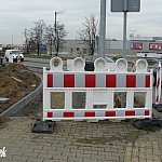 Za to pomyślano o pieszych. W granicy pasa drogowego budowany jest chodnik. Chodzi o to, by piesi mogli bezpiecznie przejść z przystanku autobusowego do centrum handlowego.