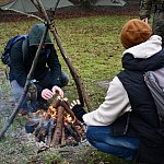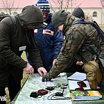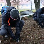 Na zewnątrz znajdowały się kolejne punkty. Można było poznać m.in. tajniki orientacji w terenie, sposoby gaszenia pożaru gaśnicą, zasady przygotowania plecaka ewakuacyjnego, sygnały alarmowe. Prowadzący szkolenie mówił też, jak rozpalić ogień w warunkach survivalowych. Zapałka może zamoknąć, zapalniczka nie zadziałać, więc najlepiej mieć ze sobą krzesiwo.