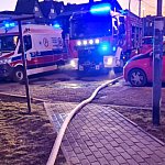 Udało się wyciągnąć piekarzanina z płonącego mieszkania, w czym pomógł sąsiad, który również odważył się ruszyć z pomocą.