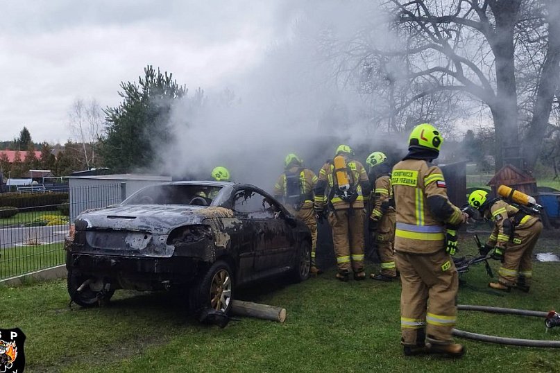 Spaliły się garaż, samochód i wyposażenie. Przyczyna pożaru jest ustalana.