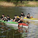 Najpierw turystów próbowały przestraszyć ołowiane chmury, a gdy przedarły się przez nie promienie słońca, we znaki dawał się porywisty wiatr. Dlatego Miejską Orkiestrę Dętą z Kalet, która postanowiła dać koncert z kajaków i łodzi, podmuchy spychały daleko od plaży, na której zebrała się publiczność. Ale muzykę niosło po wodzie i mimo porywów wichury całkiem nieźle było słychać, a w czasie występów mażoretek "Inez" muzycy odkładali instrumenty i łapali za wiosła, by podpłynąć bliżej publiczności. Trębacze, puzoniści i klarneciści za nic mając wysokie fale i zamoczone nuty, z pasją oddawali się muzykowaniu.