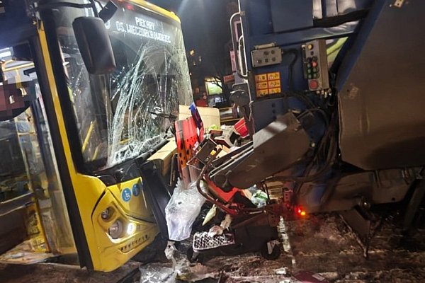 13.01.2026 Autobus miejski wjechał w śmieciarkę i osobówkę