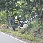 Dziś rano w Miasteczku Śląskim dachowało auto. Do zdarzenia doszło na DW 908 za centrum Miasteczka Śląskiego. Droga najpierw była zablokowana, potem ruch odbywał się wahadłowo.