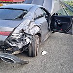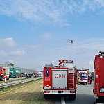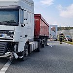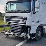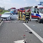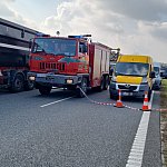 Na autostradzie A1  koło południa doszło do wypadku samochodowego. Zderzyły się samochód ciężarowy i dwa auta osobowe.