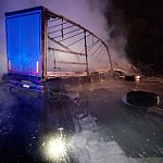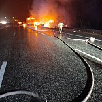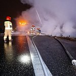 Kierowca ciężarowego samochodu uderzył w barierki i bramownicę drogową. Renault zaczęło płonąć.
