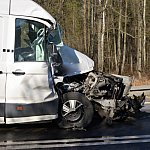 Krok od tragedii. Chwila nieuwagi i podróż zakończył na zakręcie w Ostrożnicy (gmina Świerklaniec). Dzisiaj 52-latek wjechał w ciężarówkę przewożącą butle z gazem.