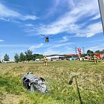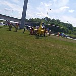 Kierowca skarżył się na ból placów. Pierwszej pomocy udzielili mu strażacy. Później do szpitala w Katowicach zabrał go śmigłowiec Lotniczego Pogotowia Ratunkowego.
