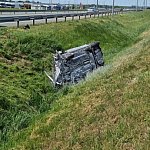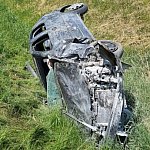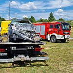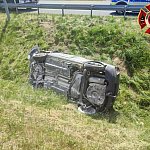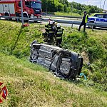 72-letni częstochowianin wjechał volkswagenem w barierę i w efekcie dachował. Do tego samochód się zapalił.