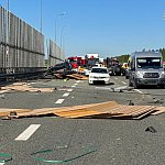 Dziś na autostradzie A4 na 318 km (Zabrze) w kierunku Katowic doszło do poważnego wypadku z udziałem samochodu ciężarowego i dwóch aut osobowych marki Skoda oraz BMW.