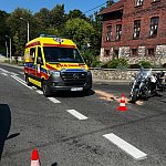 W efekcie jadący kawasaki 56-letni mieszkaniec Świerklańca wywrócił się. Motocyklista z obrażeniami bioder został przewieziony do szpitala.