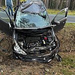 Po zderzeniu citroen dachował i zatrzymał się w przydrożnym rowie.