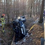 Pojazd zjechał na przeciwległy pas ruchu, a następnie uderzył w bariery energochłonne oraz drzewo. Samochód ostatecznie zatrzymał się w przydrożnym rowie.