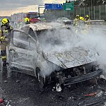 Do zdarzenia doszło w poniedziałek, 23 marca po godz. 13 przy zjeździe z drogi ekspresowej S1 w kierunku Łodzi. Ogień objął samochód dostawczy marki Ford Courier zasilany olejem napędowym.