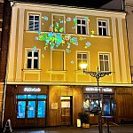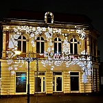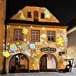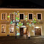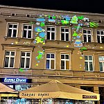 Na kamienicach rynku w Tarnowskich Górach wyświetlano dekoracje świąteczne w formie mappingu.