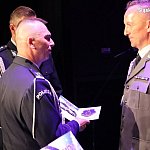 Za wzorową postawę i podjęcie walki o życie 63-latki, która straciła przytomność i przestała oddychać, nadinspektor Roman Rabsztyn wręczył posterunkowemu Radosławowi Antczakowi nagrodę przyznaną przez Komendanta Głównego Policji gen. insp. Jarosława Szymczyka.