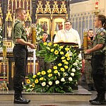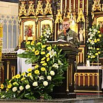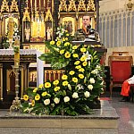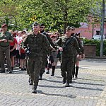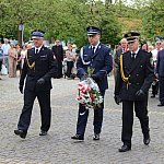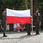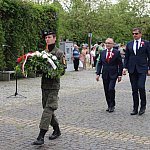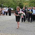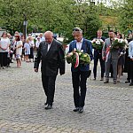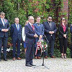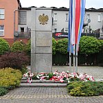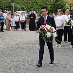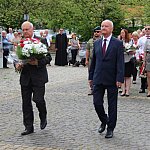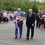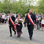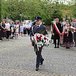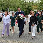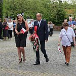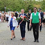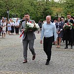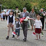 Po odegraniu hymnu państwowego i hejnału miasta nastąpiło złożenie wiązanek kwiatów.