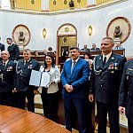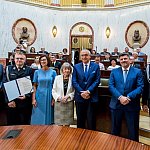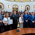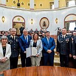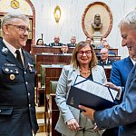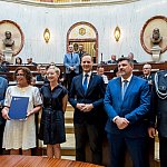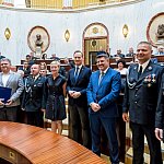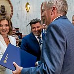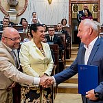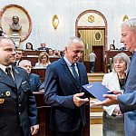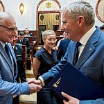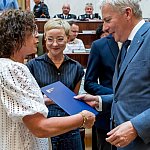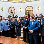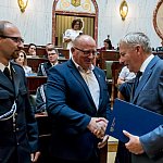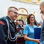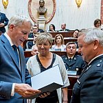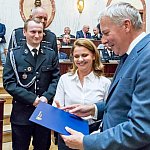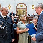 Promesy na dofinansowanie zakupu samochodów ratowniczo-gaśniczych wręczył strażakom z OSP marszałek województwa śląskiego Wojciech Saługa. Na uroczystości była też radna wojewódzka Lucyna Ekkert.