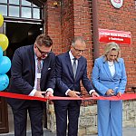 Wstęgę symbolicznie przecięli burmistrz Gabriel Tobor, dyrektor centrum Jakub Janiak i dyrektor Regionalnego Ośrodka Polityki Społecznej w Katowicach Anna Zasada-Chorab.