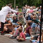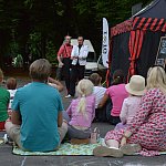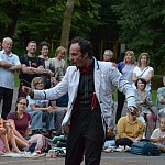 Dzisiaj wieczorem w ramach Teatralnego Parkowania wystąpił Teatr na Walizkach. Odbiegająca od poprzednich spektakli "Beczka śmiechu" pewnie niejednego widza zaskoczyła. Góry Kultury przygotowały w tym roku bardzo różnorodny repertuar.
