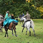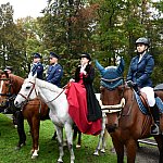 Tegoroczny Hubertus rozpoczął się koncertem Orkiestry Dętej. Później odprawiono mszę świętą, a następnie było uroczyste otwarcie Hubertusa pod Pałacem Kawalera. W barwnym orszaku można było zobaczyć jeźdźców, rekonstruktorów historycznych oraz kawalerzystów z różnych formacji. Nie zabrakło i amazonek w damskich siodłach.