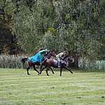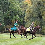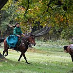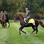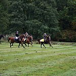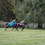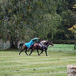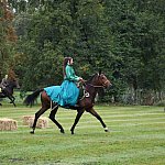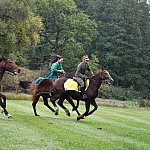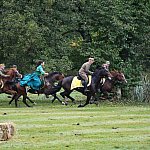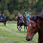 Już rozgrzewka przed główną gonitwą była pełna emocji - w niej kitę zerwała amazonka w pięknej sukni.