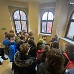 Uczniowie z Rybnej, dzielnicy Tarnowskich Gór zwiedzili budynek komendy i dowiedzieli się, jak wygląda służba policjanta w poszczególnych wydziałach.
