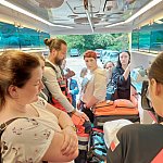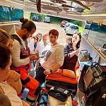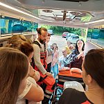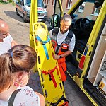 Podczas spotkania ratownicy medyczni opowiedzieli o swojej pracy, była też okazja zobaczyć wnętrze karetki pogotowia i poznać jej wyposażenie.