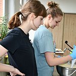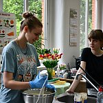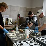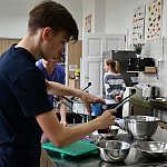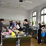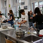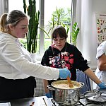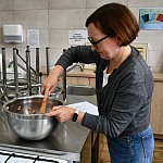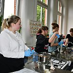Zajrzeliśmy do Gastronomika w piątkowe popołudnie, na warsztaty kuchni żydowskiej. Mówiła o niej Anna Gołkowska ze stowarzyszenia Gliwicka 66. Uczniowie przygotowali: macę bez zakwasu, koszerną chałkę, charoset - słodką pastę z owoców, symbolizującą glinę używaną przy budowie cegieł w Egipcie, zupę z soczewicy, hummus i cymes - składający się głównie z marchwi, suszonych śliwek i jabłek. Jednak można do niego dodać także inne składniki.
