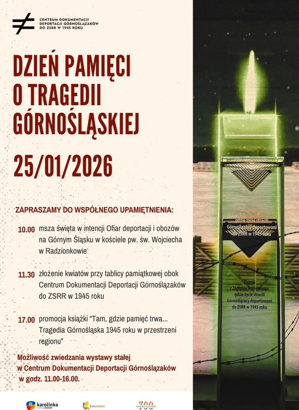 Centrum Dokumentacji Deportacji Górnoślązaków do ZSRR w 1945 roku zaprasza na Dzień Pamięci o Tragedii Górnośląskiej.
