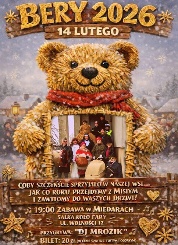 Jak co roku w Miedarach będą bery, wodzenie niedźwiedzia. Najpierw przebierańcy odwiedzą mieszkańców, a wieczorem szykuje się wspólna zabawa w salce koło fary.