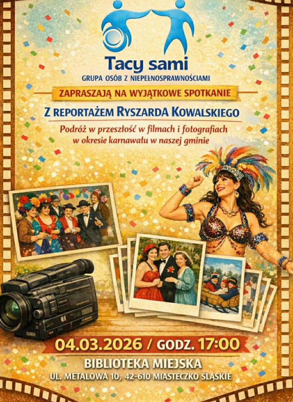 Sentymentalna podróż do przeszłości – w filmach i fotografiach zobaczymy, jak wyglądał karnawał w Miasteczku Śląskim na przestrzeni lat. To doskonała okazja, by powspominać dawne bale, stroje, tradycje i spotkać się w miłej atmosferze.